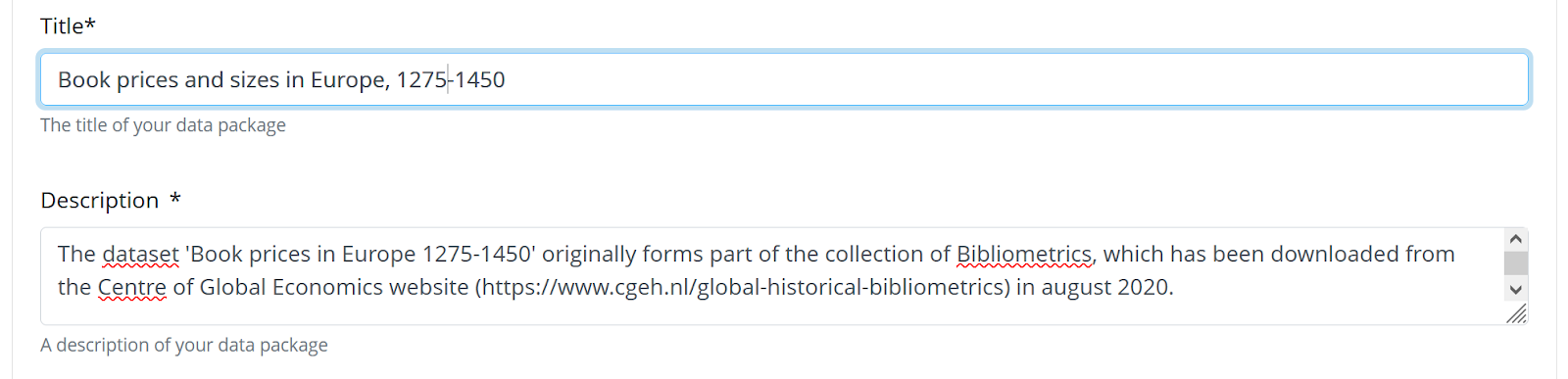 Some metadata elements consist of multiple fields. For example, if you enter a person identifier, you should also specify the type of identifier.